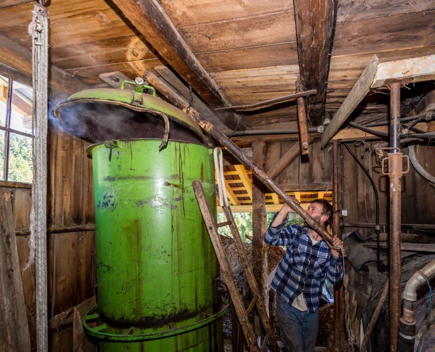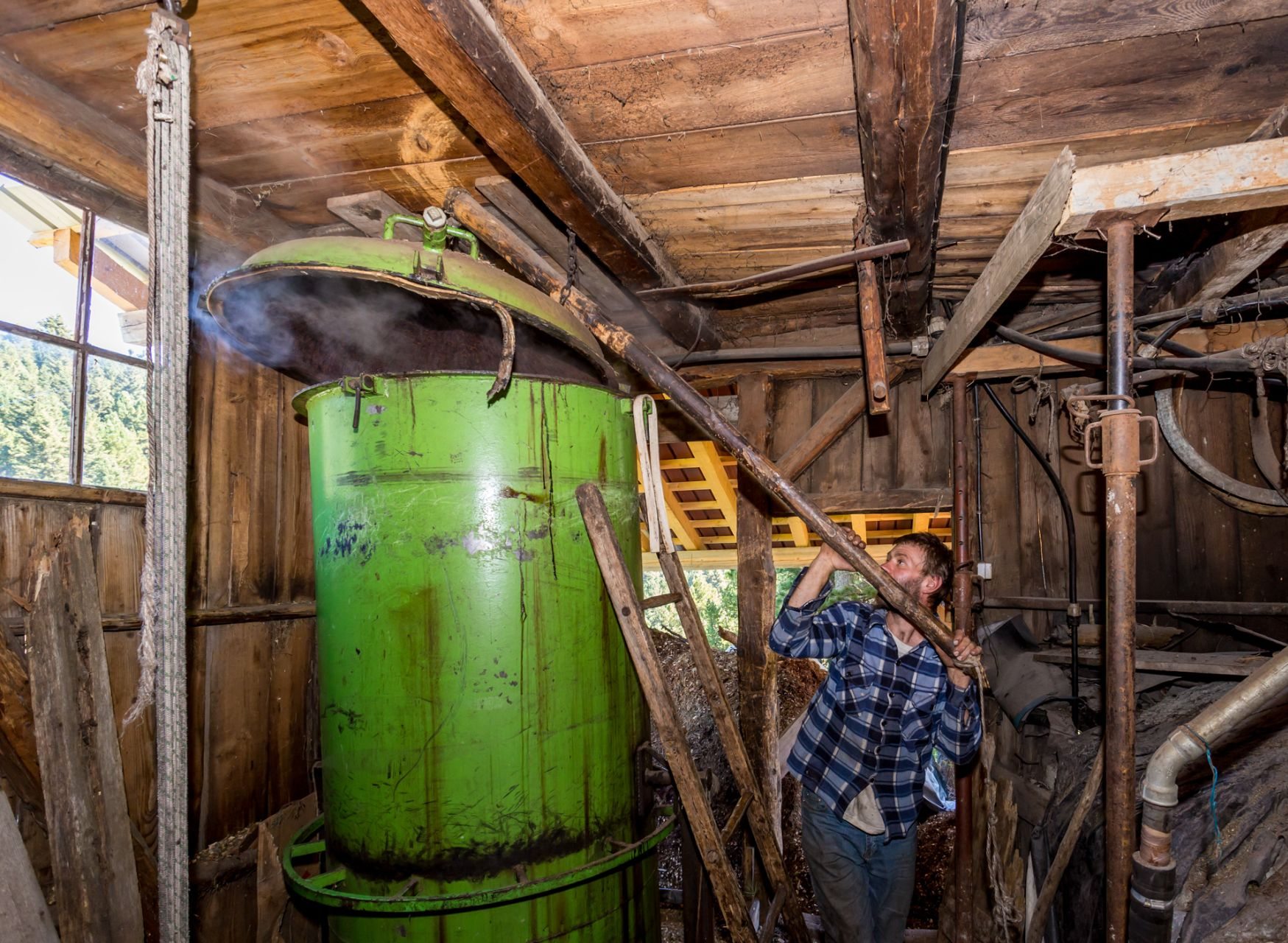 Kostenlose Besichtigung unserer urigen Latschenölbrennerei von Anfang Juni bis Ende Oktober täglich von 10:00 bis 16:00 Uhr geöffnet